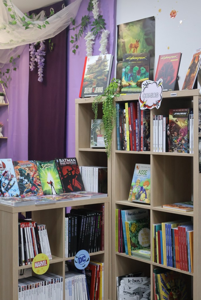Quelques pas de plus et vous voilà devant les Comics : #DC, #Marvel, comics indés et de nouveaux formats comme les nomades, les choix sont multiples ! Et si nous n’avons pas votre perle rare en rayon, nous pouvons toujours vous la commander ![]()